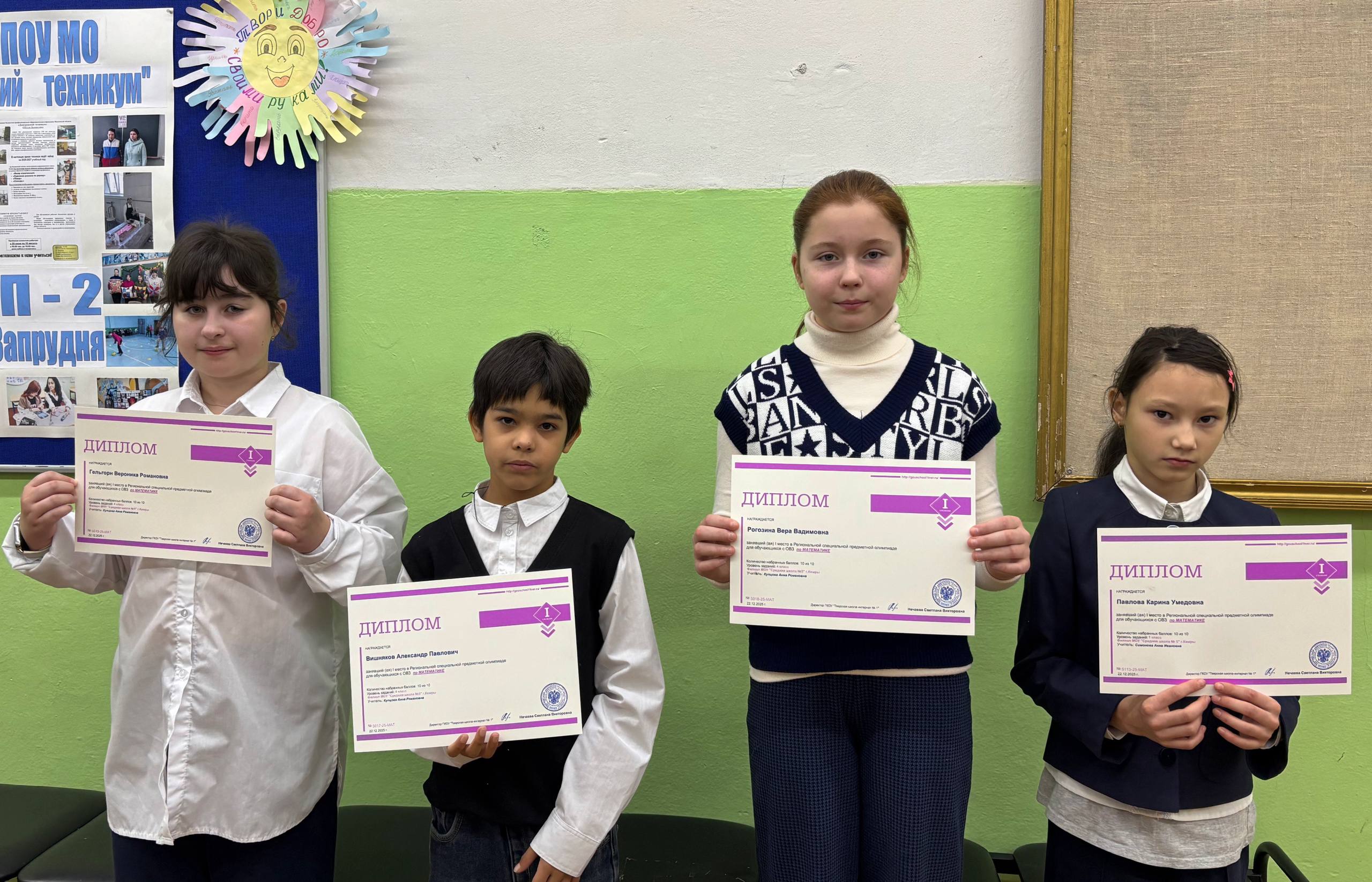 В декабре обучающиеся 1 – 9 классов приняли участие в Региональной специальной предметной олимпиаде по математике, проводимой ГКОУ «Тверская школа-интернат № 1» г. Твери.
