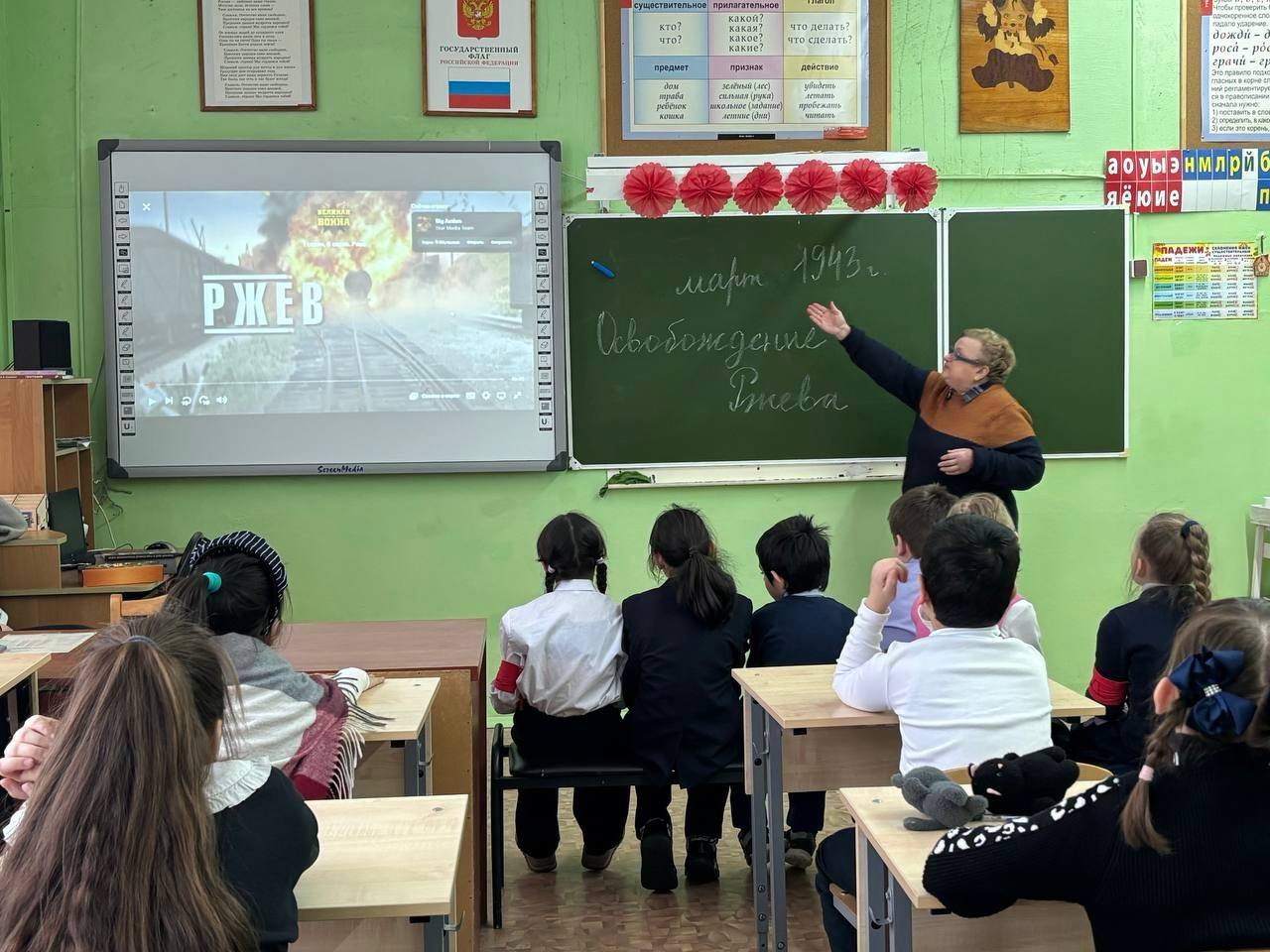 3 марта прошел Урок мужества, посвящённый 83-летию освобождения Ржева от фашистской оккупации. Ребятам рассказали о событиях 1941 – 1943 годов, когда в окрестностях Ржева шли ожесточённые бои, получившие название Ржевской битвы. Школьники узнали о периоде оккупации древнего волжского города, продолжавшейся семнадцать долгих месяцев, о том, что германский генеральный штаб связывал с Ржевом возможность нового наступления на Калинин и Москву. Память воинов, павших на ржевской земле, увековечил мемориал Советскому солдату. В 2020-м, в год 75-летия Победы, монумент открыли Президент России Владимир Путин и Президент Белоруссии Александр Лукашенко.