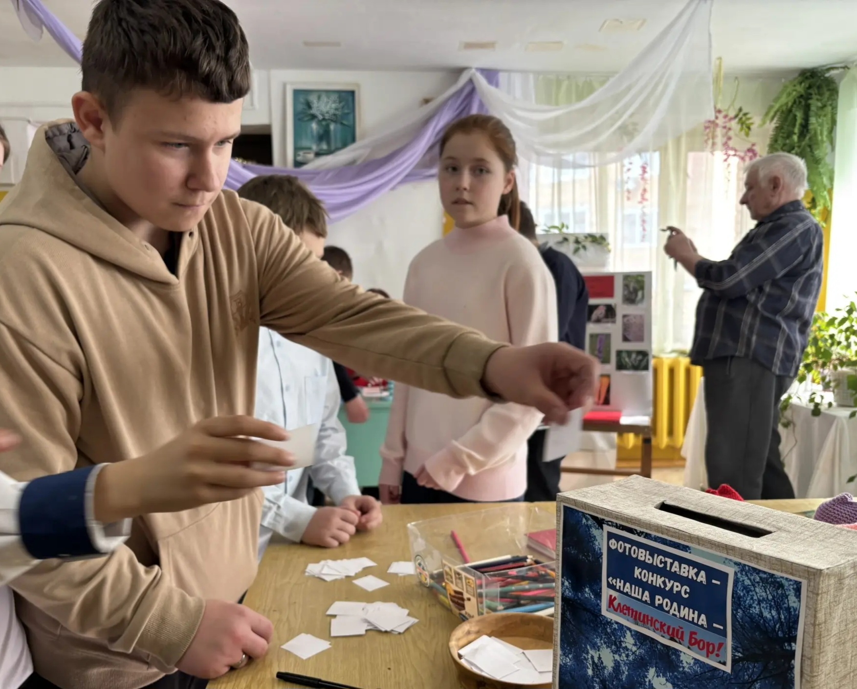 17 марта обучающиеся 1-9 классов побывали на замечательной фотовыставке-конкурсе «Наша родина — Клетинский бор» в библиотеке п. Южный. Школьники познакомились со специальной экспозицией «Краснокнижные обитатели нашего леса». Для ребят сотрудники библиотеки провели увлекательную программу. Поговорили об истории бора, разгадали лесные загадки и познакомились с удивительными птицами и растениями из Красной книги Тверской области. Дети смогли почувствовать себя настоящими избирателями: каждый ребенок выбирал самое красивое фото, записывал его номер на листочке и опускал в настоящую урну для голосования. Это стало для школьников первым в жизни «выборным» приключением!